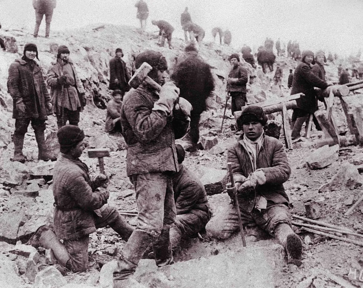 Заключенные на стройке Беломорканала, 1933 год. Фото: Laski Diffusion / Getty Images